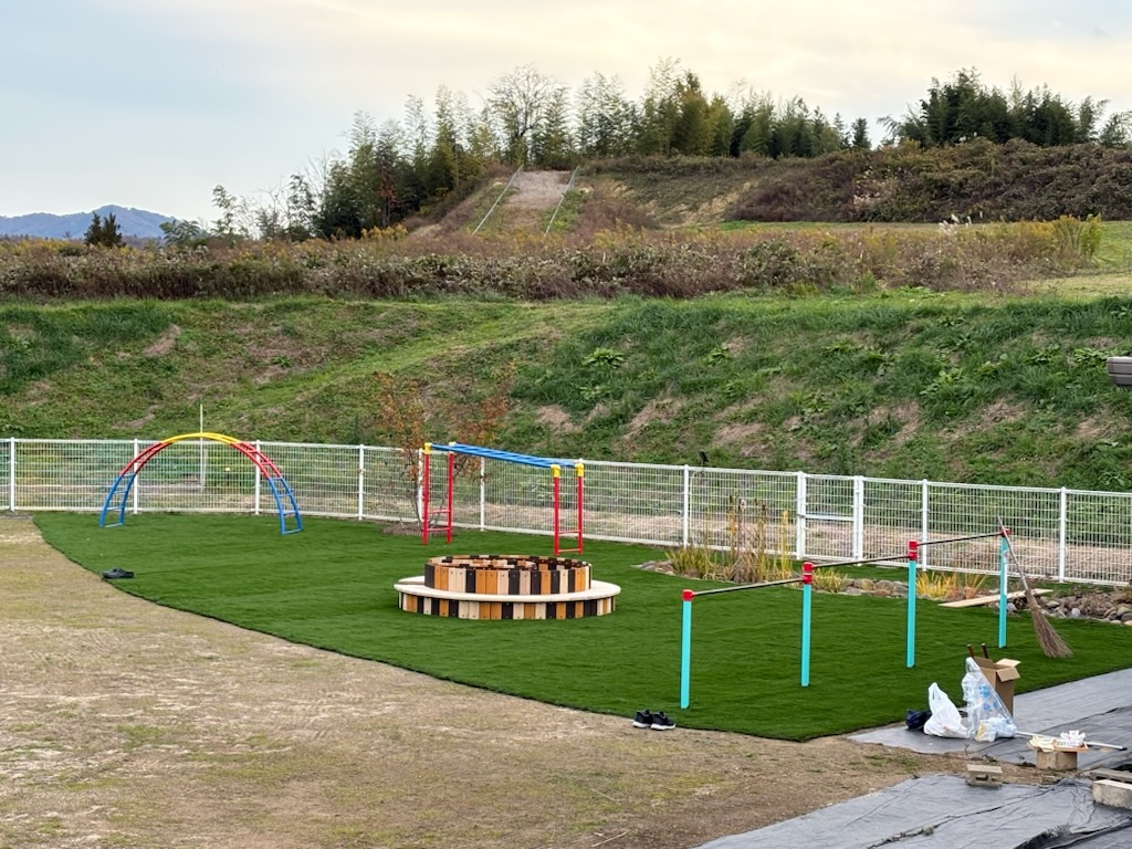 園庭の一部、メモリーターフ50mmを